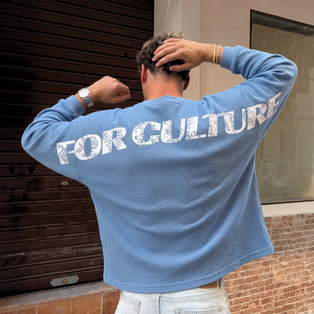 The FOR CULTURE Waffle Long Sleeve is crafted from lightweight cotton waffle fabric, delivering breathable comfort with a soft textured feel. Designed with a crop and boxy silhouette, it creates a clean, structured fit that sits naturally within modern streetwear.